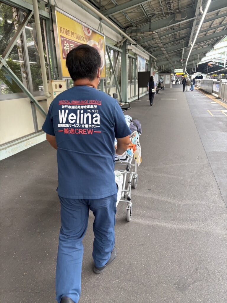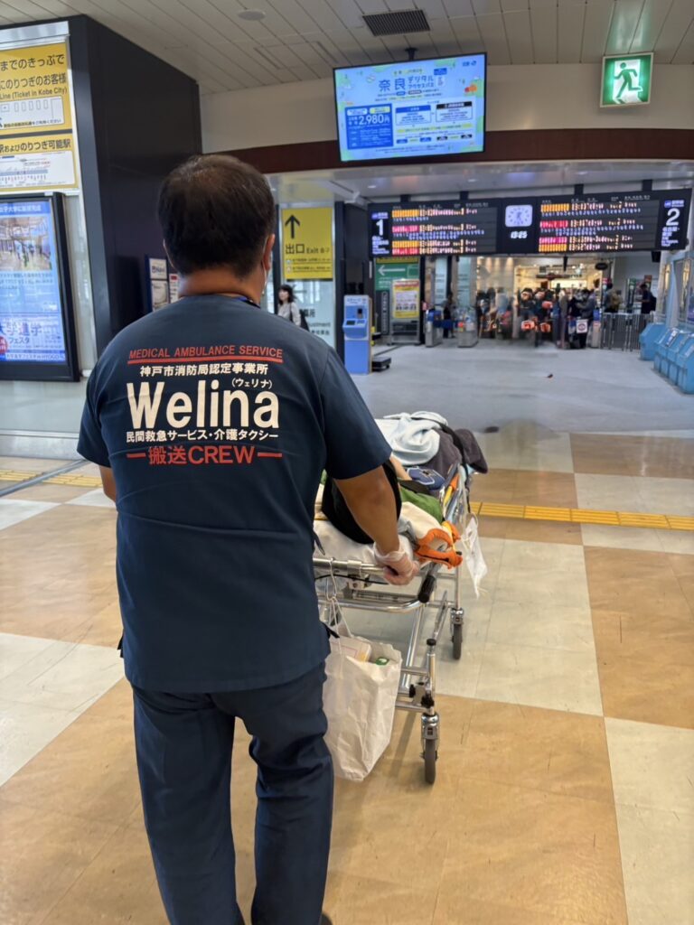 新神戸駅のお迎えは、ウェリナ神戸民間救急さん。