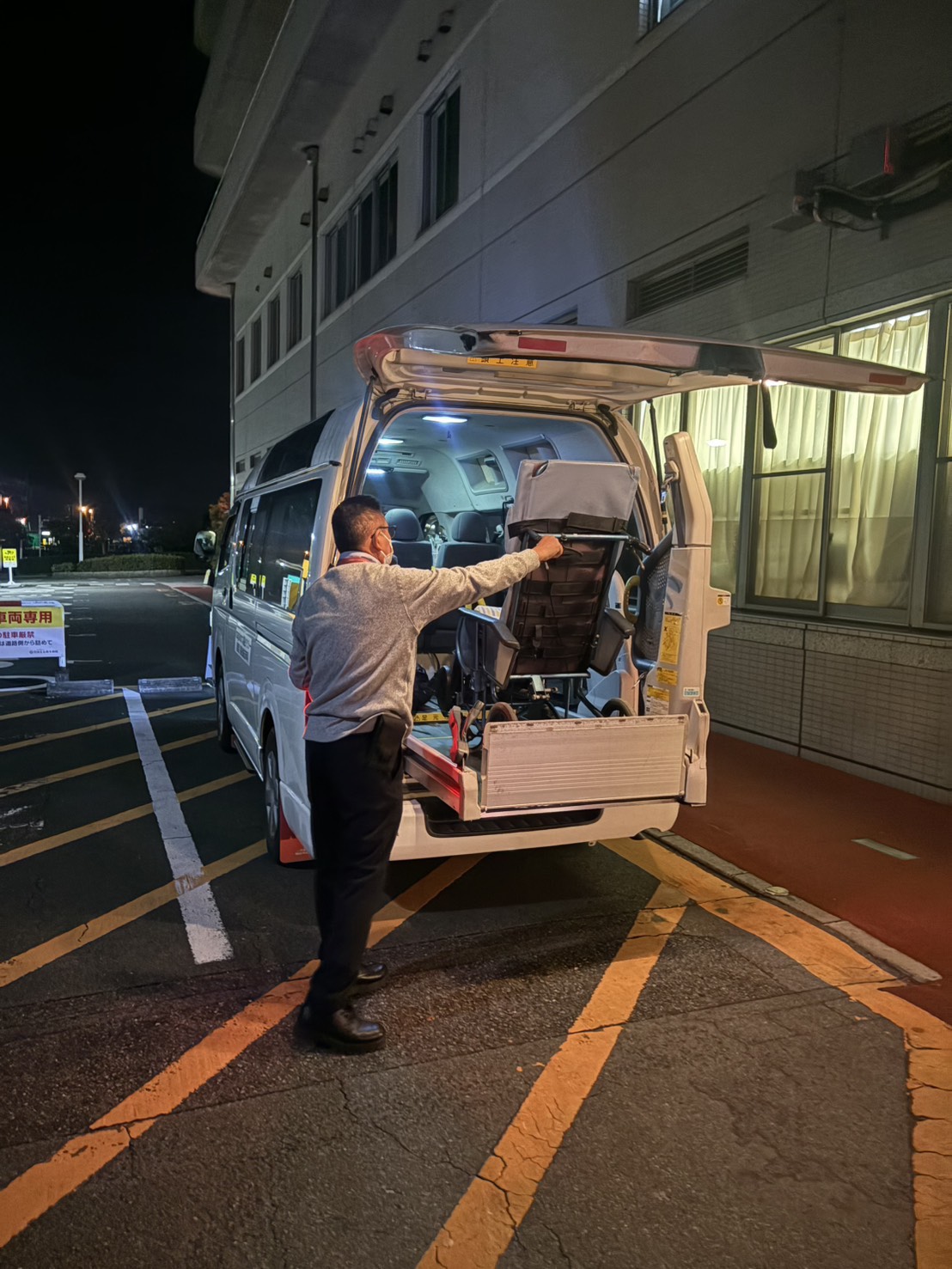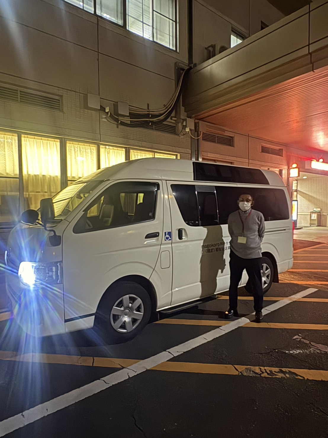 病院から熊本駅までは、まごころ福祉タクシーさま。